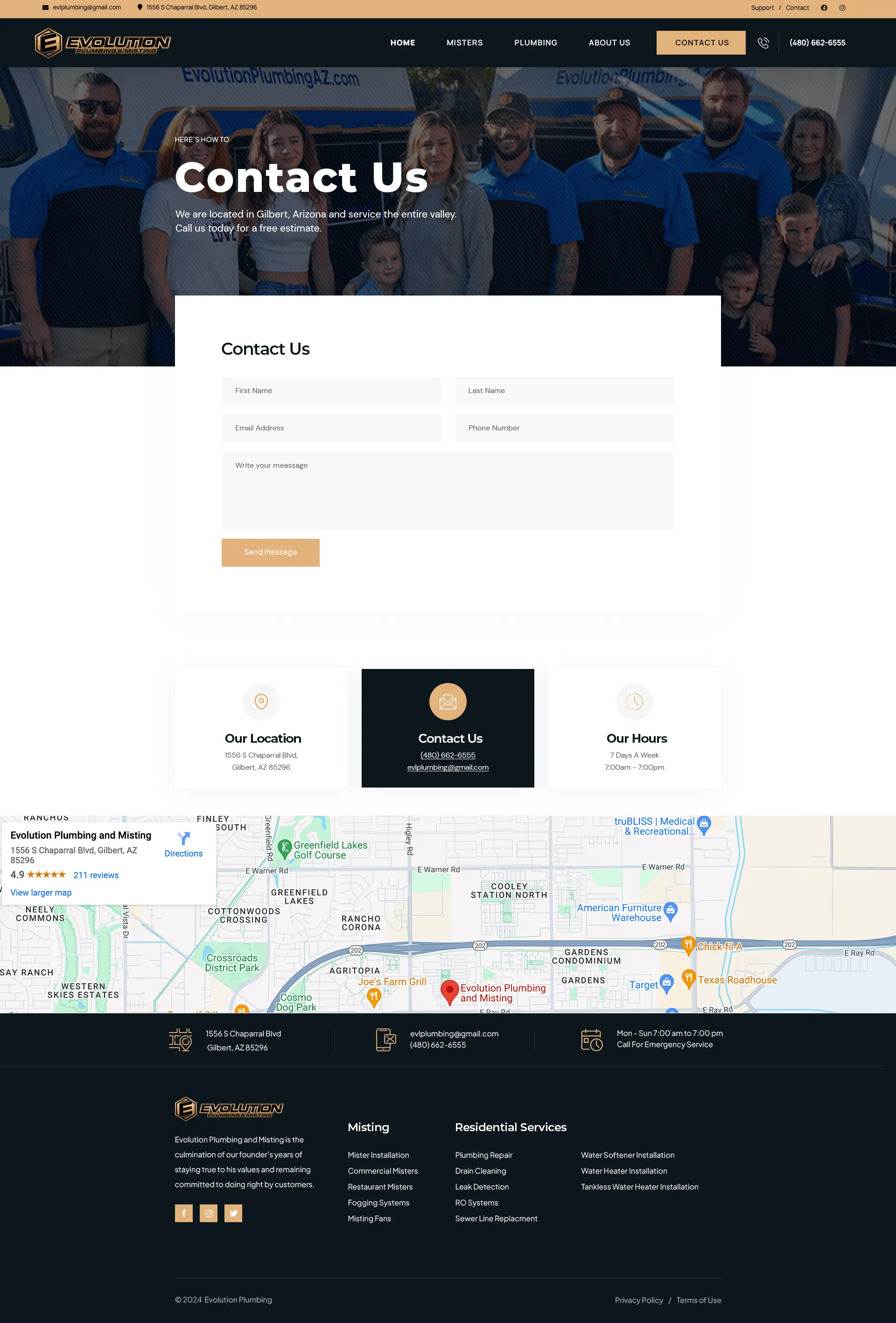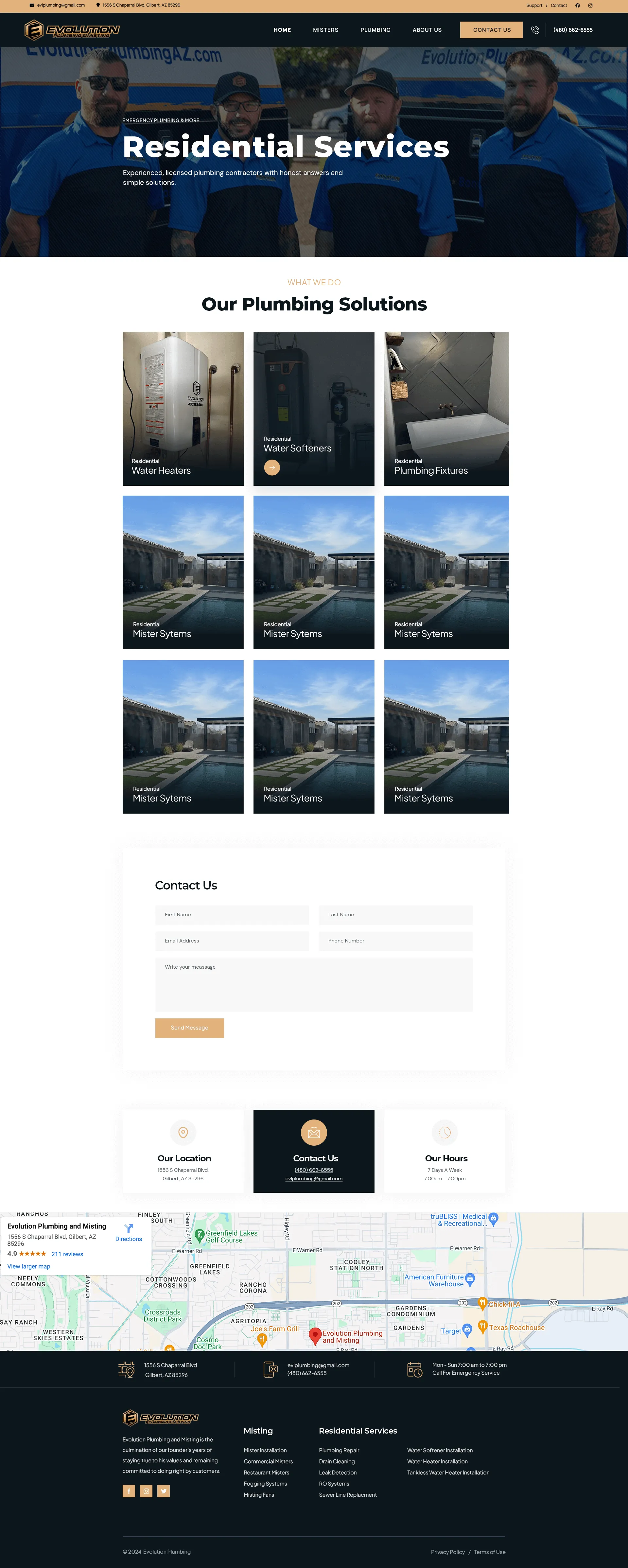 Key Features of the Evolution Plumbing Website: